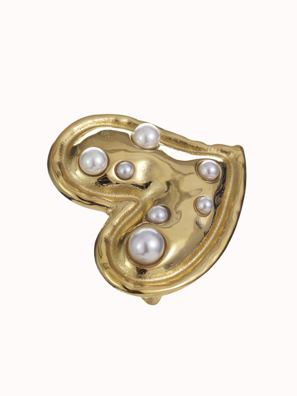 Bold ring met groot hart en parels